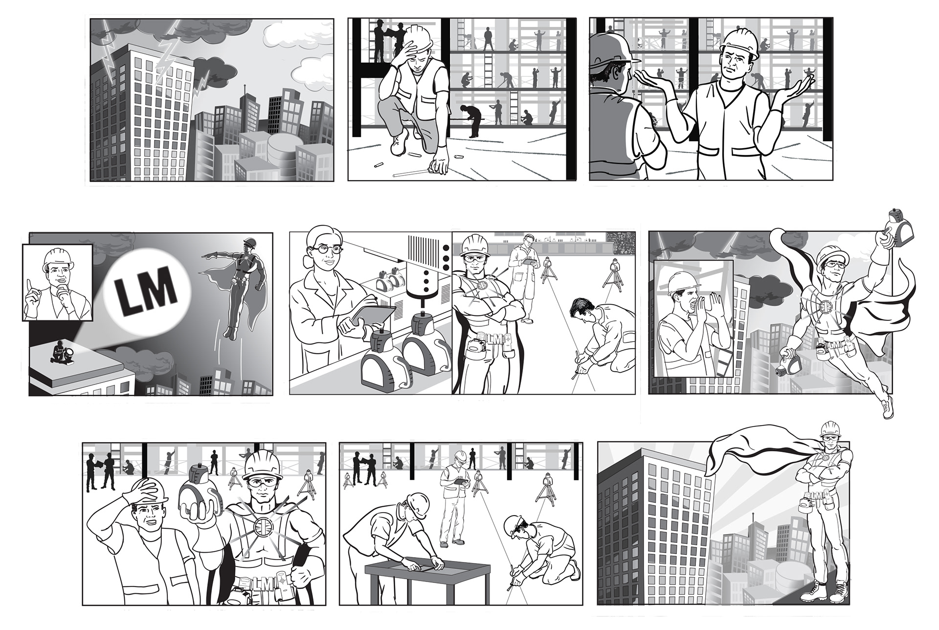 Updated and modernized Spectra Precision's classic mascot, LaserMan, for a new comic book style email and web marketing campaign.